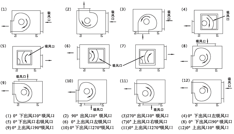 三、HTFC型風(fēng)機進出風(fēng)口位置編號表