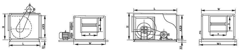 本系列產(chǎn)品分為A型和B型兩種,電動機安裝在箱體外的為A型,經(jīng)耐高溫試驗,在煙氣溫度大于280七高溫情況下,能連續(xù)運轉(zhuǎn)30分鐘以上,達到消防排煙之目的,配用雙速電機后,既可在低速通風(fēng)換氣,又可在高速時消防排煙,為一機兩用:電動機安裝在箱體內(nèi)的為B型,一般作送排通風(fēng)使用。