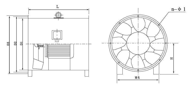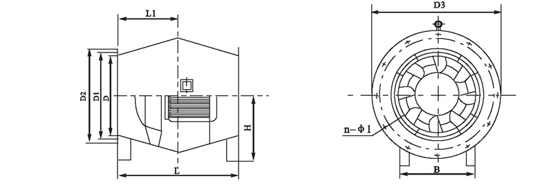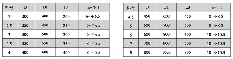 注:風(fēng)機(jī)出廠時(shí)法蘭一般不打孔。n-φ1僅供參考,若要打孔請(qǐng)用戶在訂貨時(shí)說明.